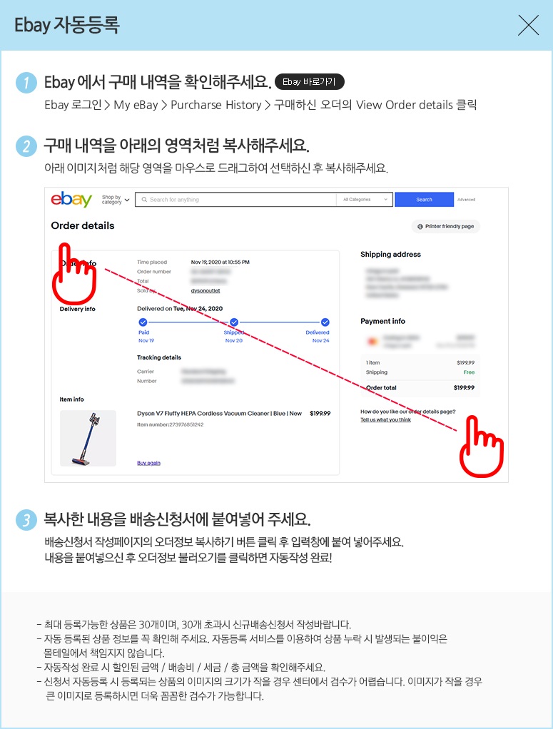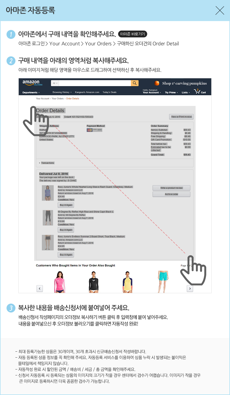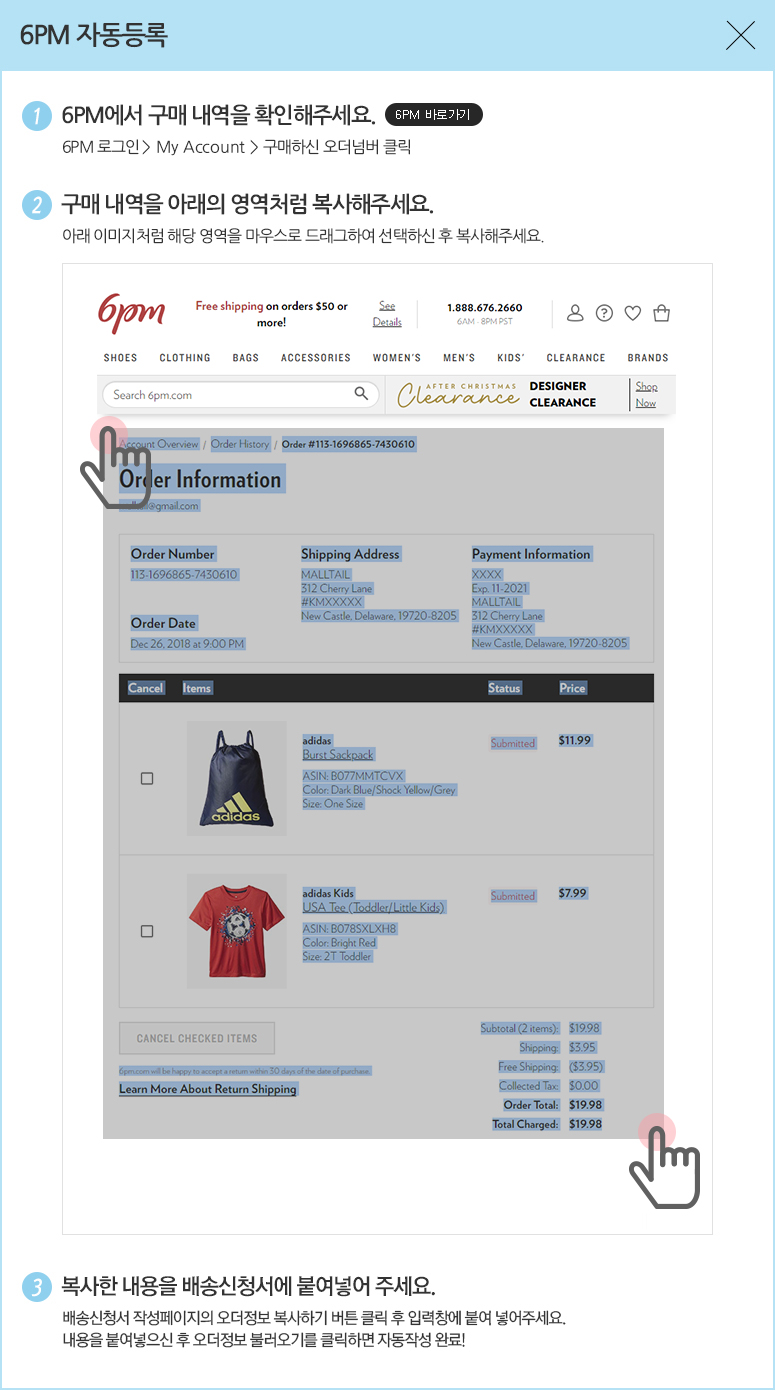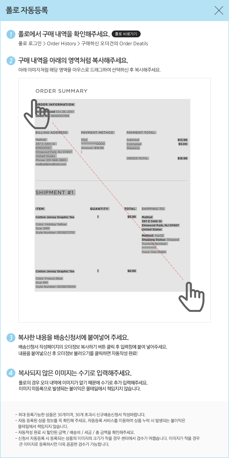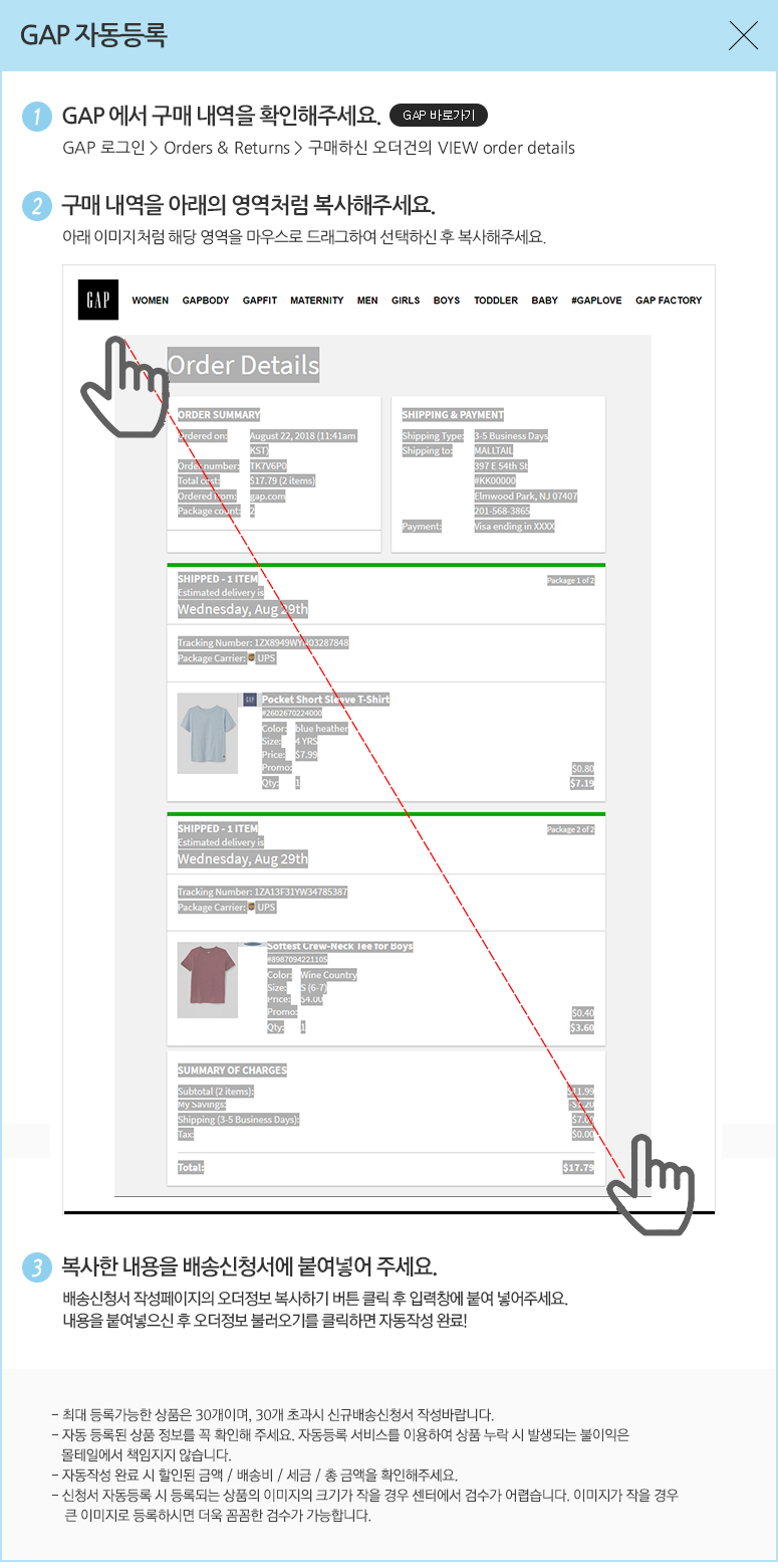 한국 쇼핑몰에서 상품 구매시 수령지 정보로 한국 물류센터 주소지 적는 법